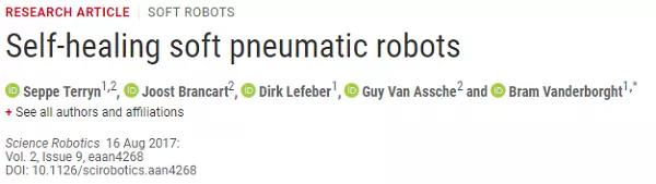 受許多生物體的啟發(fā),軟機(jī)器人幾乎完全由柔性軟材料制成,使其適合于不確定的動(dòng)態(tài)任務(wù)環(huán)境中的應(yīng)用,包括人機(jī)交互。它們固有的柔韌性可以吸收沖擊并保護(hù)它們免受機(jī)械沖擊。但是,用于其構(gòu)造的軟材料極易受到損壞,例如在操作中不受控制和不可預(yù)測(cè)的環(huán)境中存在的尖銳物體所造成的割傷和穿孔。針對(duì)該問(wèn)題,比利時(shí)布魯塞爾自由大學(xué)的Bram Vanderborght團(tuán)隊(duì)利用了材料的自愈性能,構(gòu)造了軟機(jī)器人自修復(fù)彈性體,開(kāi)發(fā)出了可自我修復(fù)的軟氣動(dòng)執(zhí)行器的三種應(yīng)用:軟夾持器,軟手和人造肌肉。該材料中熱可逆的共價(jià)網(wǎng)絡(luò)使其具有治愈微觀和宏觀損傷的能力,而且在損傷處,沒(méi)有弱點(diǎn)形成,并且執(zhí)行器的全部性能在愈合后幾乎完全恢復(fù)。