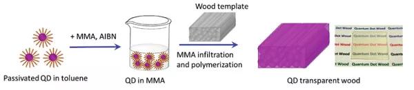 https://www.sciencedirect.com/science/article/pii/S22112855163014101. Adv. Mater.: 發(fā)光透明木材包含活性熒光材料的功能光轉(zhuǎn)換層是許多器件中的必要組件。瑞典皇家理工學(xué)院Ilya Sychugov團(tuán)隊(duì)通過用富含量子點(diǎn)的甲基丙烯酸甲酯滲透木材模板,成功制造了結(jié)合光學(xué)和承載功能的發(fā)光透明木材。在這一轉(zhuǎn)變過程中,沒有檢測到光學(xué)退化的跡象,表明量子點(diǎn)與封裝用透明木材基質(zhì)間良好的相容性。木質(zhì)結(jié)構(gòu)引入了強(qiáng)散射,導(dǎo)致嵌入量子點(diǎn)的漫射發(fā)光,這對于平面光源和發(fā)光建筑構(gòu)件或家具是有利的。木材細(xì)胞壁的表面改性將有助于調(diào)節(jié)這種新材料的光散射特性,使其具有更廣泛的應(yīng)用前景。