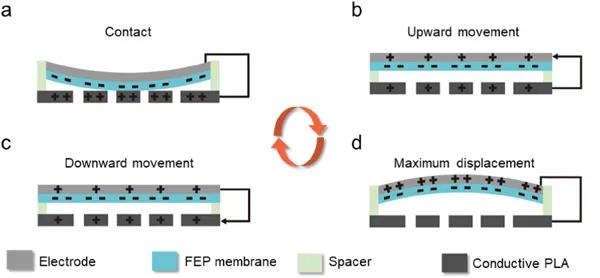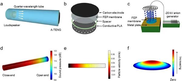 低頻聲能在學(xué)術(shù)領(lǐng)域和工業(yè)界都受到了極大的關(guān)注。在我們的生活環(huán)境中,低頻聲波波長較長,不易被吸收或隔離。但是,這種機械能如果采用適當(dāng)?shù)钠骷O(shè)計和能量轉(zhuǎn)換方法,如壓電法和電磁法,可以將其采集并轉(zhuǎn)化為電能,有望實現(xiàn)對電子器件的供電。對于壓電器件,通常采用高壓電系數(shù)的陶瓷材料,但其與空氣的阻抗不匹配極大影響了聲電轉(zhuǎn)換效能的提升。對于電磁方式,通常需要線圈、磁鐵等笨重的部件,不利于微弱環(huán)境聲能量采集系統(tǒng)的實現(xiàn)。近年來,王中林院士提出的新型摩擦納米發(fā)電機(TENG)在聲能采集領(lǐng)域顯示出廣闊的前景。與壓電聲學(xué)器件相比,TENG器件常具有軟、柔性的特點,可以顯著降低能量采集器與入射聲波之間的聲阻抗失配,以提高聲能量收集裝置的輸出功率。此外,摩擦電器件具有廣泛的材料選擇性,給器件的制作及實現(xiàn)帶來了極大便利。到目前為止,已經(jīng)有幾項研究顯示了TENG在聲波能量收集和自供電傳感方面的潛力。上述器件主要采用實現(xiàn)聲壓增強的亥姆霍茲聲諧振器。然而,當(dāng)亥姆霍茲諧振腔底部采用柔性膜時,往往會出現(xiàn)聲壓放大效果的降低。此外,基于亥姆霍茲諧振器的聲能采集器對柔性部件的變化非常敏感,這表明要實現(xiàn)最優(yōu)性能,需要復(fù)雜的調(diào)試工程。實際上,四分之一波長諧振器是另一種重要的聲學(xué)諧振器,與亥姆霍茲諧振器相比,它具有設(shè)計簡單、制作方便等獨特的優(yōu)點。但這種結(jié)構(gòu)在聲學(xué)TENG領(lǐng)域還沒有得到足夠的重視。此外,對于聲摩擦納米發(fā)電器件,其關(guān)鍵部件之一是用于聲波傳播的穿孔板。在以往的研究中,這一層通常由多孔材料組成,如微穿孔鋁、導(dǎo)電織物、泡沫銅等。然而,這些材料的孔徑很難調(diào)控,粘滯損失對聲衰減的影響也沒有進行探討,對孔的加工工序也較復(fù)雜。針對上述問題,近日,在南京郵電大學(xué)謝燕楠教授和袁明副教授研究團隊,提出了一種3D打印的聲學(xué)摩擦納米發(fā)電機(A-TENG),具有結(jié)構(gòu)可控、一次性成型、制作簡單、成本低等特點。通過四分之一波長管優(yōu)異的放大性能及器件參數(shù)的合理設(shè)計,該系統(tǒng)在100 dB聲壓級激勵下能夠產(chǎn)生4.33 mW的峰值功率輸出,實現(xiàn)對72個LED的驅(qū)動。當(dāng)聲壓級為90分貝時,即可驅(qū)動一個商用計算器連續(xù)工作,表明其作為低功耗電子設(shè)備電源的應(yīng)用前景。此外,團隊還開發(fā)了由A-TENG、AI語音識別芯片和控制電路組成的智能邊緣系統(tǒng)。語音信號首先可以通過A-TENG轉(zhuǎn)化為電信號,然后由內(nèi)置預(yù)訓(xùn)練的AI芯片進行邊緣識別和處理,產(chǎn)生相應(yīng)的指令動作來控制后續(xù)電路。該智能邊緣系統(tǒng)無需云計算即可實現(xiàn)實時語音識別,展示了聲學(xué)TENG在低功耗、高性價比的物聯(lián)網(wǎng)領(lǐng)域的巨大潛力。該成果以題為“A 3D-printed acoustic triboelectric nanogenerator for quarter-wavelength acoustic energy harvesting and self-powered edge sensing”發(fā)表在Nano Energy上(IF 16.602)。圖1 四分之一波長聲能采集系統(tǒng)的示意圖