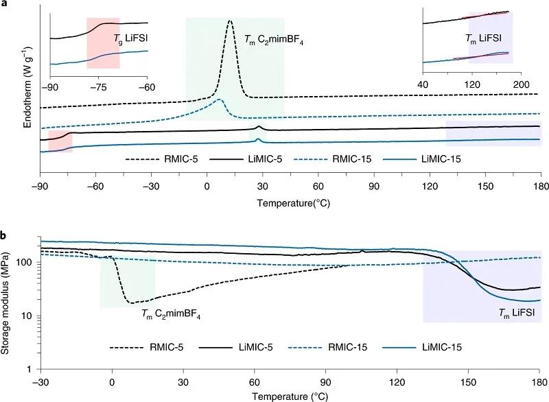 (b)DMA顯示RMICs和LiMICs在-30至180 °C的機(jī)械性能。