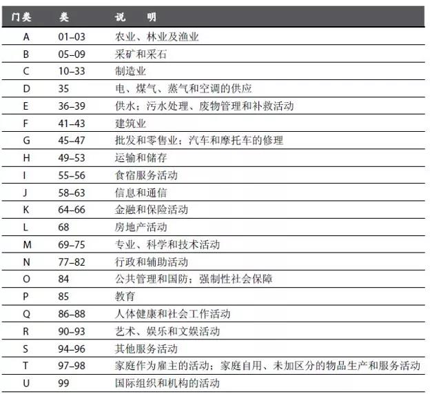 下圖為《國際標(biāo)準(zhǔn)行業(yè)分類》中第二部分第一章總體結(jié)構(gòu)中將單個類別歸并,成為以下21個門類: