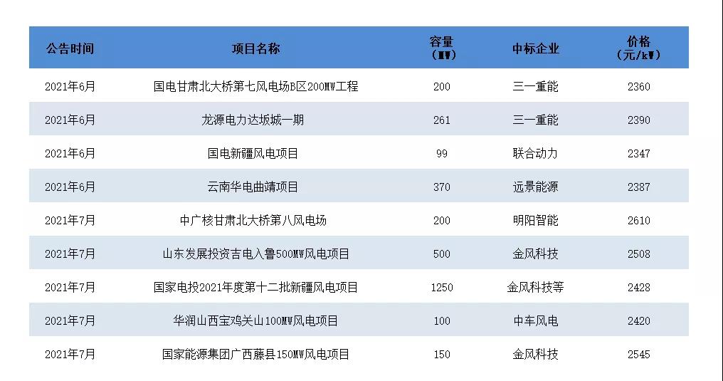 隨著風機大型化的發(fā)展,降本增效已經(jīng)體現(xiàn)在了今年的風機招標價格上,根據(jù)今年風電項目中標情況,三北、西南地區(qū)大型風電項目的風機中標價格已低至2300-2500元/kW,較2020年同期的價格大幅度下降。
