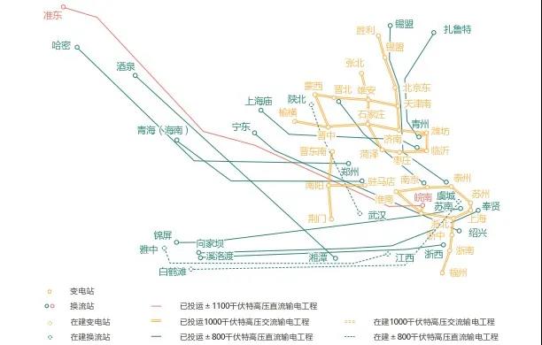 其中,國家電網(wǎng)新疆(準東)—華東(皖南)±1100千伏特高壓直流輸電工程是世界上電壓等級最高、輸送容量最大、輸送距離最遠、技術水平最先進的特高壓輸電工程,換流容量2400萬千瓦,線路長度3324Km,途經(jīng)新疆、甘肅、寧夏、陜西、河南、安徽6省(區(qū)),工程總投資407億元人民幣。