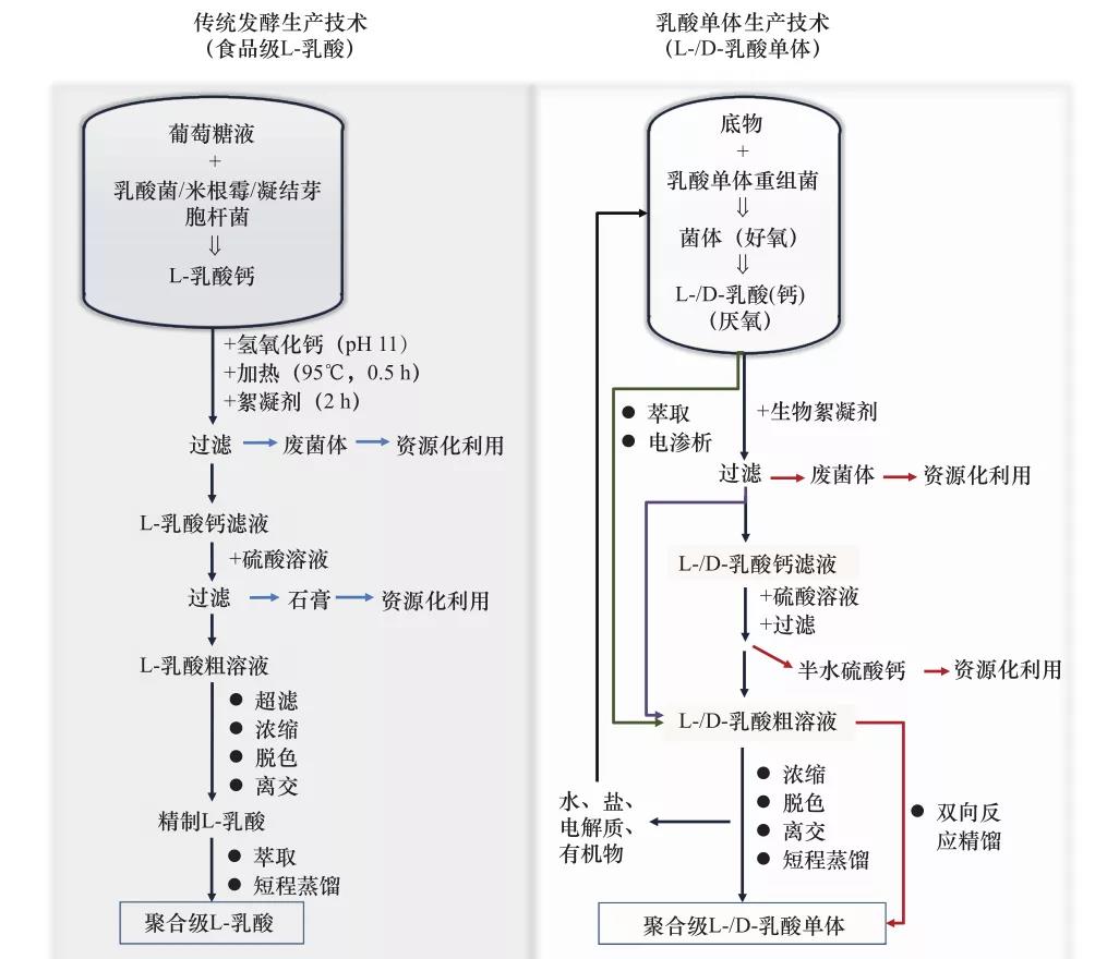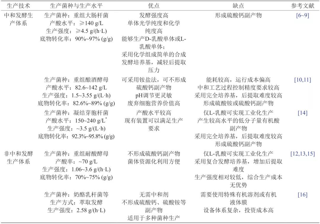 表 1 乳酸單體的主要生產(chǎn)技術(shù)