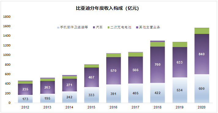 比亞迪的多元化,本質(zhì)上還是一種降低風(fēng)險的方式,所謂的“船大不怕浪高”。比亞迪一開始先做手機電池,后又進入手機代工,隨后又去做汽車。在2010年比亞迪汽車銷量見頂后的10年里,比亞迪靠手機代工的現(xiàn)金流支撐著汽車部門,讓比亞迪能夠活到自己的新能源汽車部門見到光明的那一天。