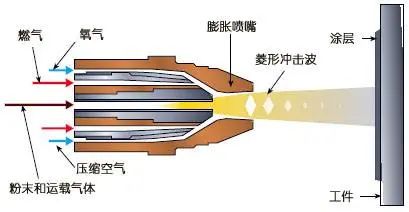 超音速空氣燃料噴涂(HVAF)是在超音速火焰噴涂(HVOF)技術(shù)的基礎(chǔ)上發(fā)展起來的,兩種噴涂技術(shù)的主要不同點是HVAF采用壓縮空氣為燃料代替氧氣,兩者在火焰溫度和粒子飛行速度方面也都有一定差異。