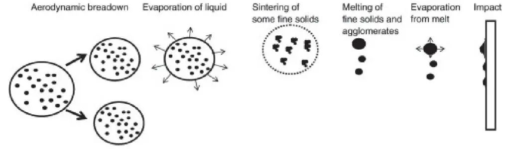 影響熱噴涂涂層性能的主要因素是原料在噴涂焰流中的熔融狀態(tài)(溫度)和飛行速度(微粒的動能)。在大氣等離子噴涂之后出現(xiàn)的各種熱噴涂技術(shù),無一不是通過提高微粒溫度或速度來獲得性能優(yōu)異的涂層。此外,由于等離子噴涂、爆炸噴涂等技術(shù)無法使用納米粉體進料,在制備納米結(jié)構(gòu)涂層時只能通過造粒將其制為微米級粉體用于噴涂,噴涂工藝和涂層性能均受到限制。因此,研究人員還開發(fā)了懸浮液等離子噴涂(SSPS),以便獲得特定組織的納米結(jié)構(gòu)涂層。