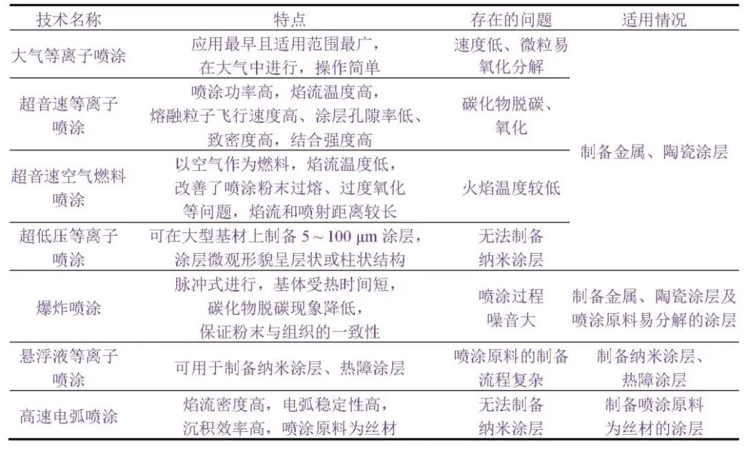 不同熱噴涂工藝的優(yōu)缺點及適用情況