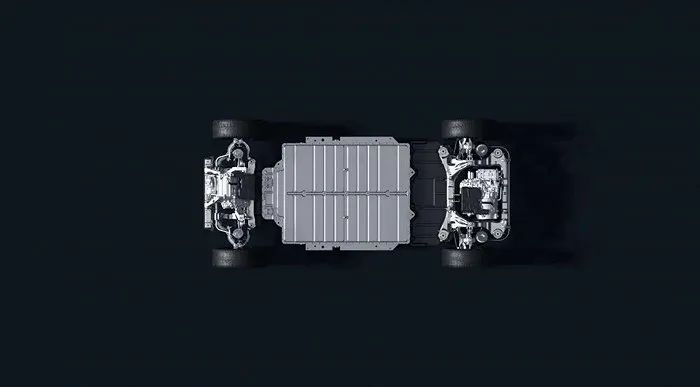 全新的電池包采用無(wú)模組設(shè)計(jì),大約由960個(gè)(40x24)“