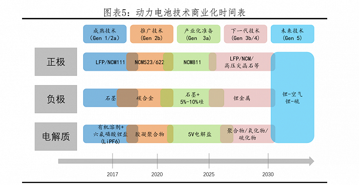至今,鋰離子電池已完成三次技術(shù)代際轉(zhuǎn)換:鈷酸鋰正極是第一代,錳酸鋰和磷酸鐵鋰是第二代,三元鋰是第三代。三代鋰離子電池均由四大部分組成:正極、負(fù)極、電解液與隔膜。
