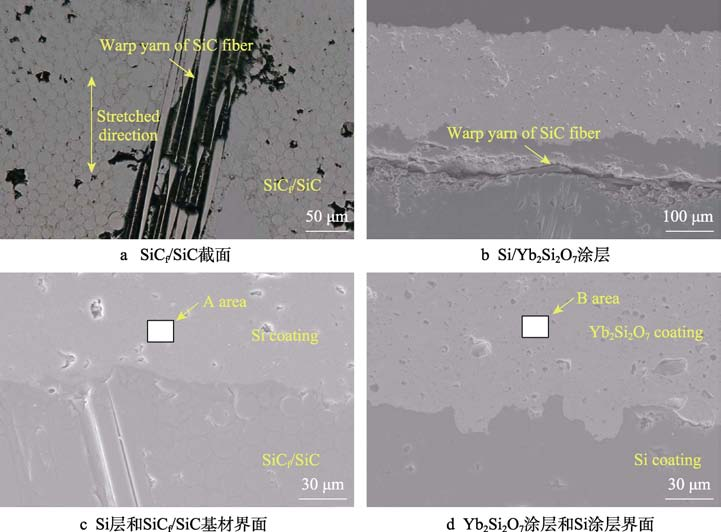 圖 6 SiCf/SiC 復(fù)合材料和 Si/Yb2Si2O7 涂層的截面顯微結(jié)構(gòu)