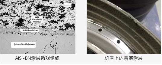 易磨涂層(Abradable Coating),是發(fā)動(dòng)機(jī)葉尖封嚴(yán)系統(tǒng)的一部分,也叫“封嚴(yán)涂層”。通常應(yīng)用于機(jī)匣零件中的跑道面,主要作用是減少葉尖碰磨損傷。由于易磨涂層需要跟葉尖進(jìn)行對(duì)磨,為了保護(hù)葉尖,易磨涂層一般硬度小,結(jié)合力差,從而能夠保證葉尖在大服役狀態(tài)碰上時(shí),能夠有效地刮削涂層。