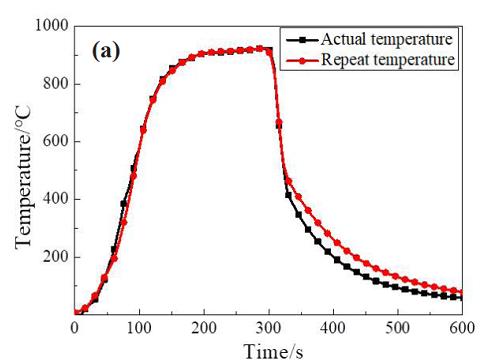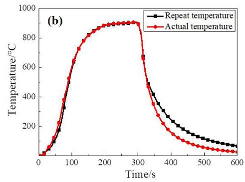 圖 6 熱障涂層在升降爐中的溫升重復曲線與實際溫度曲線對比: (a) 吸力面; (b) 壓力面