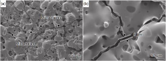雖然包埋法制備 SiC 涂層的技術具有明顯的優(yōu)勢,但是此方法仍存在以下缺點:(1)包埋 SiC 涂層由于制備溫度高、反應時間長,具有較大的表面粗糙度;(2)在包埋過程中,C/C 復合材料被熔融的液態(tài)硅硅化,會對薄壁件的力學性能造成嚴重的破壞;(3)由于重力因素,涂層的均勻性和厚度控制難。為了解決上述問題,Zhou 等首先采用料漿噴涂與熱處理炭化的方法制備多孔 SiC 預涂層,該預涂層可以在一定程度上防止硅擴散至基材,減少硅在高溫下對 C/C 復合材料的侵蝕。然后引入氣相滲硅工藝,利用氣態(tài)硅在多孔預涂層中的浸滲填充與化學反應,形成致密的涂層(GSI-SiC-Si)。試樣在 1773 K 至室溫的熱震實驗中經受 30 次循環(huán)后,與常規(guī)包埋 SiC 涂層(PC-SiC-Si)相比裂紋尺寸明顯減少(圖 2),而且有 0.07% 的增重,在 1773 K氧化 500 h 后有 0.25% 的增重,表現(xiàn)出優(yōu)異的抗氧化性能。Miranda 等通過高速溶液等離子體噴涂工藝(HVSPS)在 C/C 復合材料表面制備了 SiO2/SiC梯度涂層,利用 SiO2 玻璃在高溫下的自愈合特性提高了涂層的抗氧化能力。