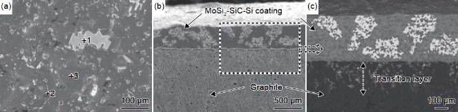 Jiang 等通過料漿浸漬在石墨表面制備出MoSi2-SiC-Si 涂層,然后采用氣相滲硅技術使之形成致密的涂層結構(圖 4)。實驗結果顯示,在室溫至 1600 ℃ ,涂層始終呈現(xiàn)出良好的抗氧化效果,1600 ℃ 氧化 220 h 后試樣失重為 0.96%。并在涂層中加入了 CrSi2 相,制備了 MoSi2- CrSi2-SiCSi 涂層。氧化過程中形成了氧擴散系數(shù)較低的氧化層且氧化層中有分散的 MoSi2 和 CrSi2 相 , 在1600 ℃ 氧化 1190 h 后有 1.64% 的增重。