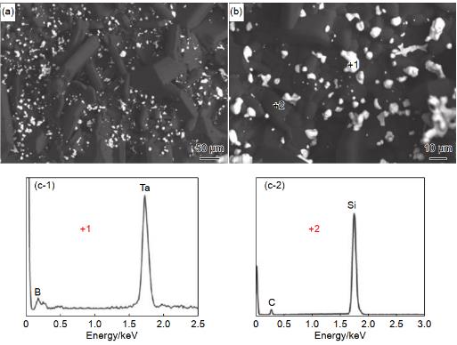 實驗研究表明,超高溫陶瓷硼化物因具有優(yōu)異的抗氧化性能,可用來改性抗氧化硅基陶瓷涂層。硼化物改性的硅基涂層在 1200 ℃ 氧化時會生成B2O3,能夠起到很好的氧化防護作用;在 1200 ℃以上氧化時,B 和 Si 的氧化物形成硼硅酸玻璃,其不僅可抑制 B2O3 在高溫下的蒸發(fā),且硼硅酸鹽玻璃自身高熔點、高黏度和氧擴散速率低等特性均能提高涂層整體的抗氧化能力。Ren 等用原位反應法在帶有 SiC 預涂層的 C/C 復合材料表面制備 ZrB2-SiC 抗氧化涂層,制備工藝采用價格較低的 B2O3、ZrO2、Si 和 C 粉末代替價格昂貴的 ZrB2粉末,降低了生產的成本,并且得到了較好的抗氧化性能。此外又采用液相燒結法制備出不同硼化物含量的 ZrB2、TaB2 和 HfB2 等改性 SiC涂層(圖 5),探究了各種硼化物在涂層中的抗氧化機理。Pourasad 等首先在石墨表面制備出功能梯度 SiC 涂層,之后通過以 Zr、Si 和 B4C 粉末為原料的原位反應法制備 ZrB2-SiC 涂層,得益于氧化過程中穩(wěn)定 ZrSiO4 相的形成,涂層具有良好的抗氧化能力。Wang 等利用原位反應法制備了添加硅化物(WSi2、CrSi2 等)的 HfB2-SiC 涂層,并探究了其在 1700 ℃ 的抗氧化和抗燒蝕能力。結果顯示涂層在氧化和燒蝕過程中均能形成多相鑲嵌的玻璃層結構,表現(xiàn)出良好的抗氧化和抗燒蝕能力,其中 CrSi2 含 量 為 15%( 質 量 分 數(shù) ) 的 CrSi2-HfB2-SiC 涂層可保護 C/C 復合材料在 1973 K 氧化 415 h后失重 1.6%,氧乙炔火焰燒蝕 90 s 后質量損失率為 4.56 × 10-5 g/s。Kovaleva 等采用新型多腔爆轟加速器(MCDS)技術,在 C/C 復合材料表面制備了添加 Y2O3 和 Al 的 ZrB2-MoSi2 涂層,并在 1500 ℃對試樣進行熱處理。結果顯示,在加入 Y2O3 后,ZrO2 的穩(wěn)定性得到提升,SiO2 的分布也更加均勻。Astapov 等利用自蔓延高溫合成法合成復合粉體,再結合熱壓法制備出 ZrSi2-MoSi2-ZrB2 涂層,研究了其在 1400 ℃ 的氧化動力學和機理,證實了該涂層保護機制的有效性。
