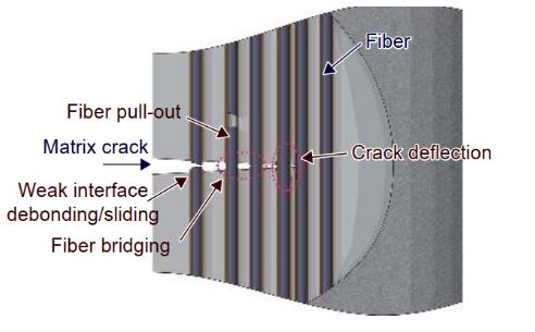 材料的失效類型主要包括斷裂、腐蝕和磨損等。 SiC/SiC 復(fù)合材料的失效主要表現(xiàn)為在載荷、高溫、異物沖擊、氧化、摩擦等單因素或多因素作用下發(fā)生的斷裂、腐蝕和磨損。 SiC/SiC 復(fù)合材料具有多種組分,每種組分相比 SiC 或六方氮化硼(h-BN)等純陶瓷材料有很大的不同,不同組分可以多種方式組成復(fù)合材料,因此 SiC/SiC 復(fù)合材料具有因材料組成和制備工藝而異的失效行為。同時(shí),SiC/SiC 復(fù)合材料的服役環(huán)境十分復(fù)雜,已開展了很多高溫水氧或燃?xì)猸h(huán)境下的長時(shí)力學(xué)實(shí)驗(yàn),研究 SiC/SiC 復(fù)合材料在力、熱、水、氧以及高速氣流等綜合作用下的損傷演化和失效機(jī)理,以達(dá)到監(jiān)測(cè) SiC/SiC 復(fù)合材料性能衰減并預(yù)測(cè)其剩余服役壽命的目的。由于 SiC/SiC 復(fù)合材料磨損失效行為的專門研究還比較少,本文重點(diǎn)討論 SiC/SiC復(fù)合材料的斷裂失效和腐蝕失效。