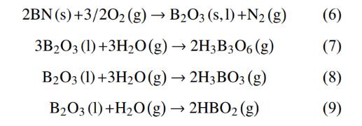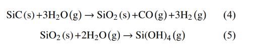 SiC/SiC 復(fù)合材料在水氧環(huán)境下,除了與氧氣發(fā)生反應(yīng)外,還會(huì)與水蒸氣發(fā)生反應(yīng),其中 SiC 基體的反應(yīng)通常是: